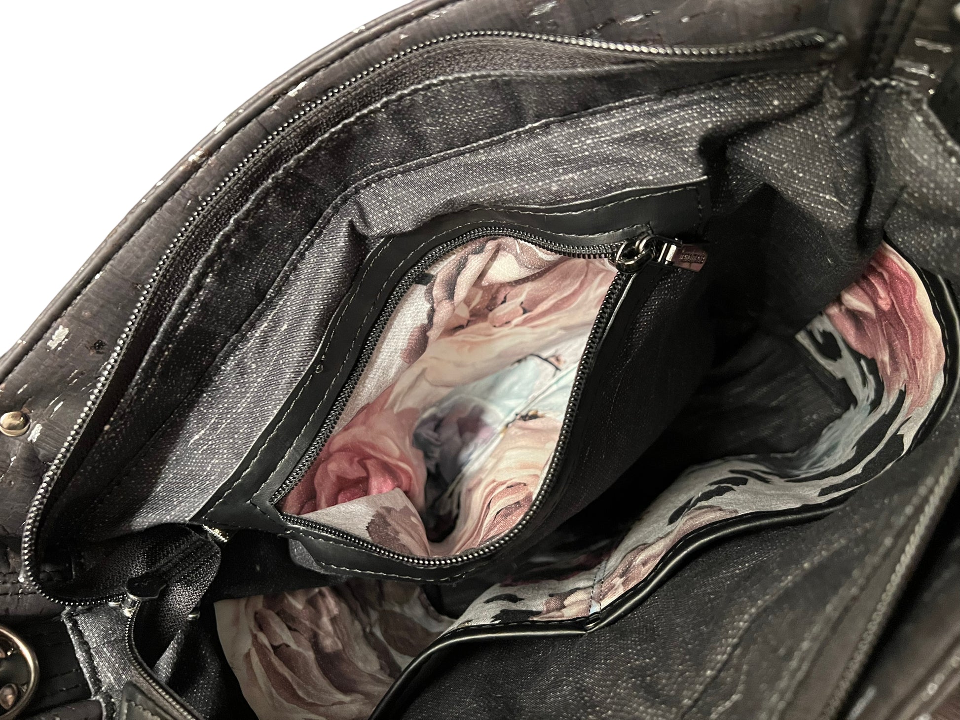 Black cork and floral convertible backpack