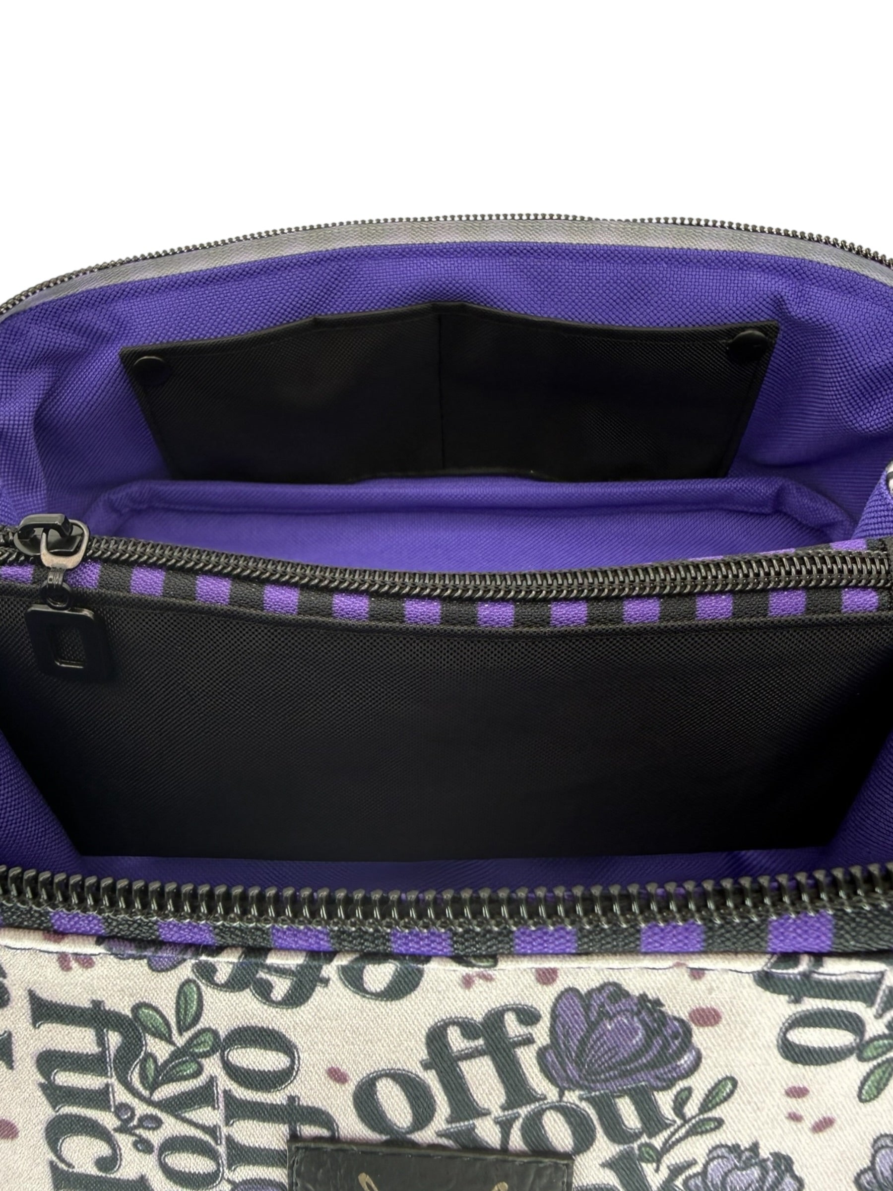- Interior zipper divider pocket.