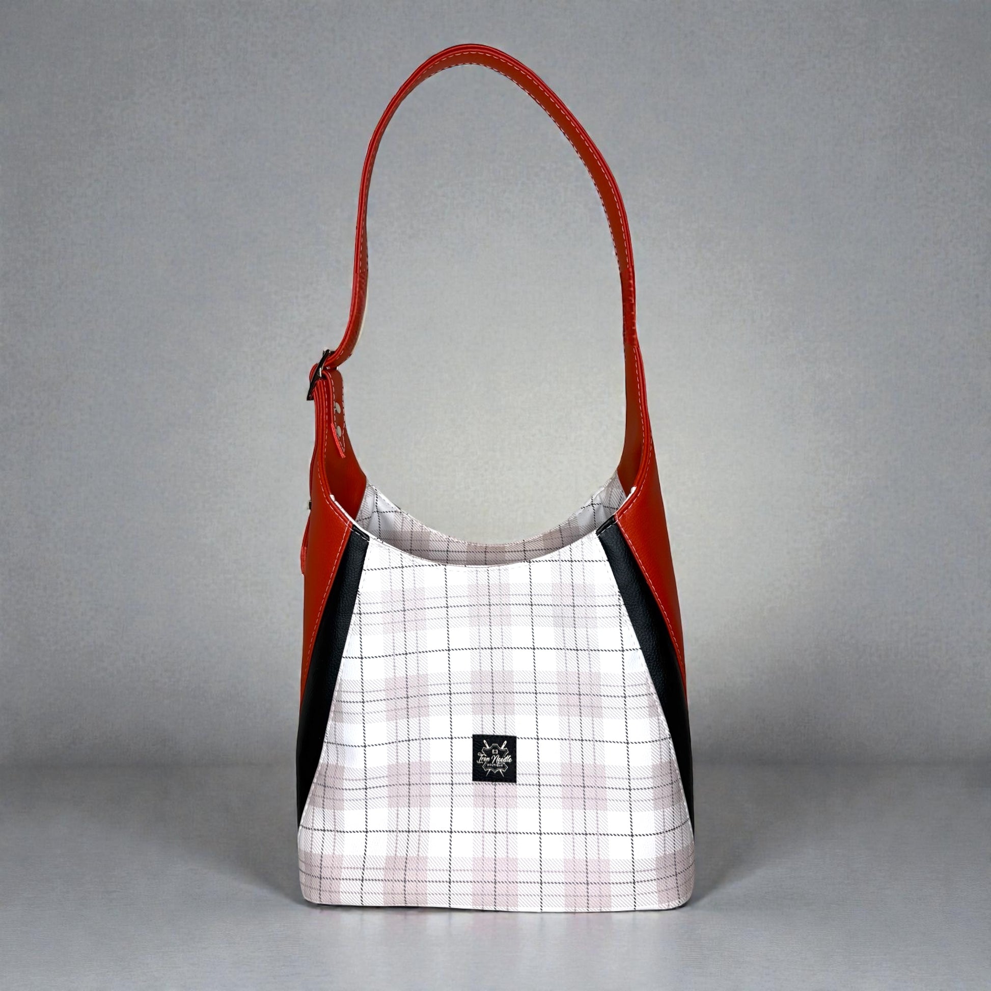 Orange and plaid adena shoulder bag